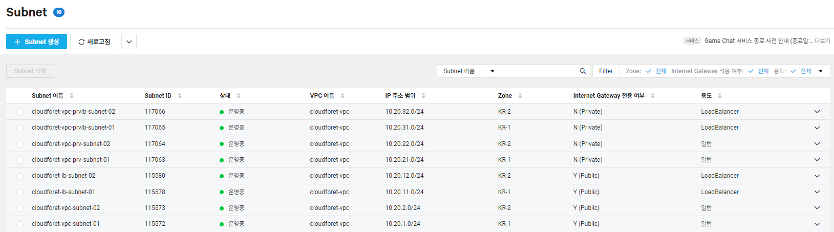 네이버 클라우드에서 이런 식으로 서브넷을 나눌 수 있는데 AWS랑 되게 비슷한 느낌이다. 오히려 좋아