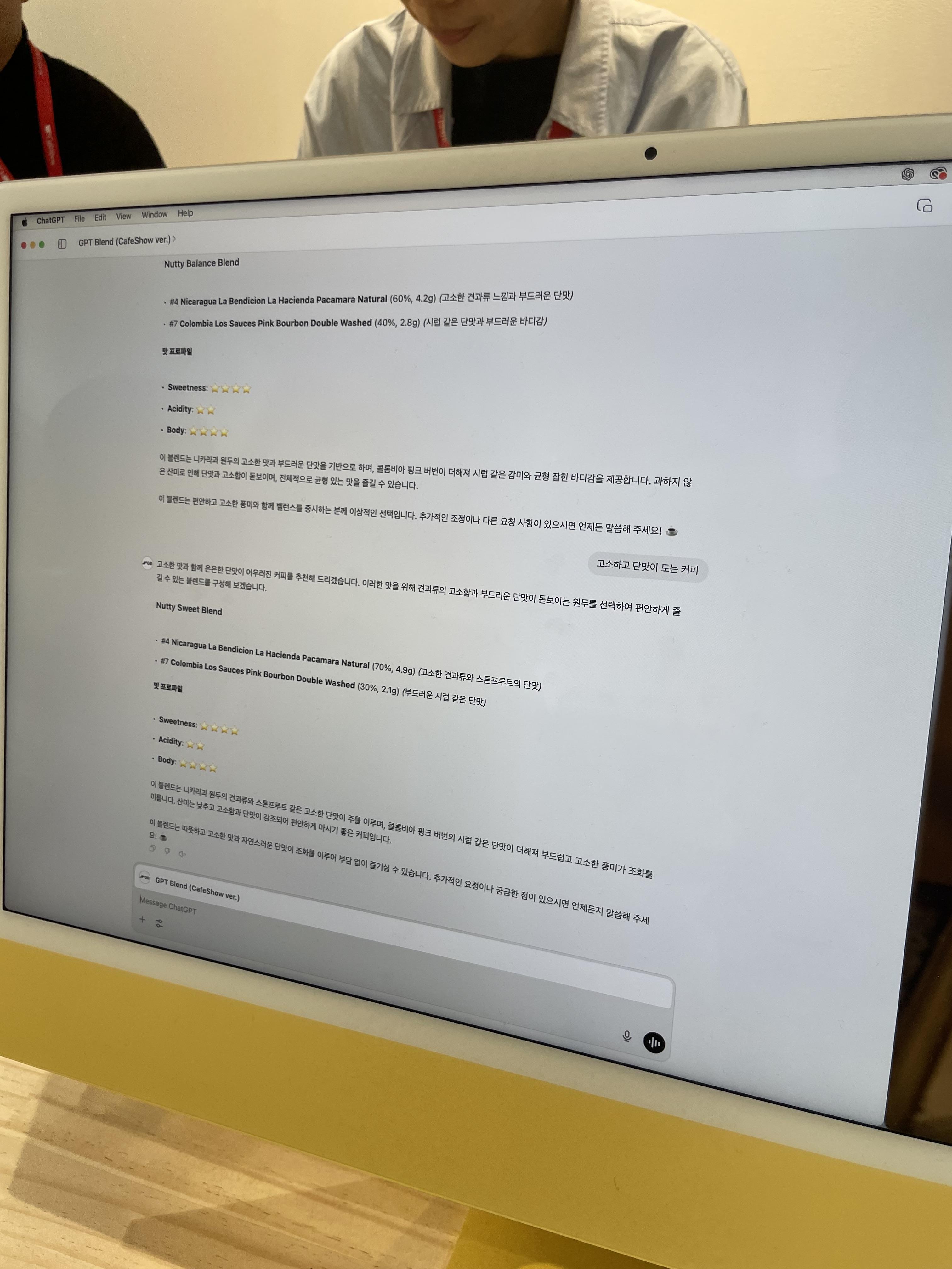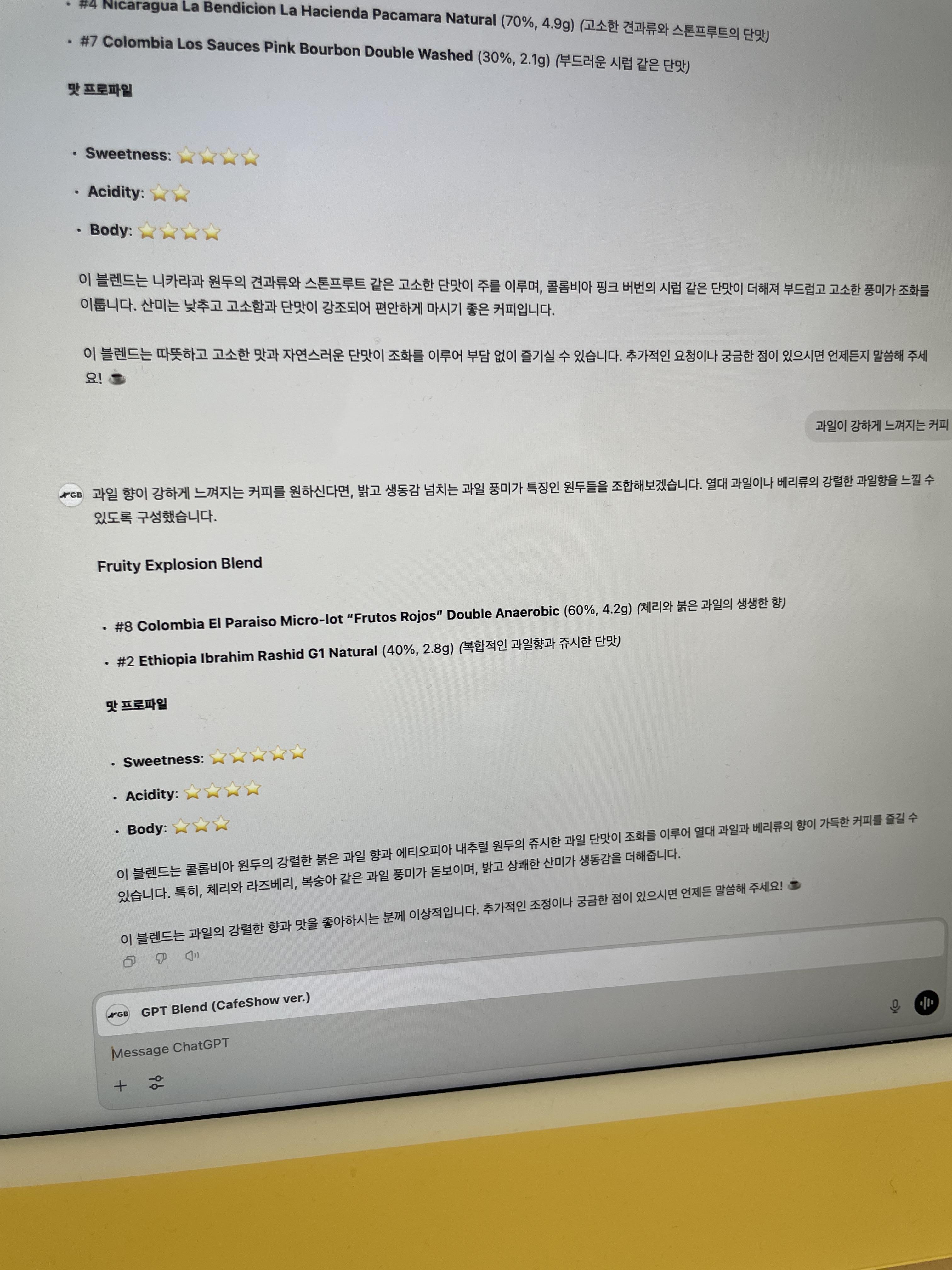 gpt로 내가 원하는 뉘앙스의 커피를 입력하면 블렌드 조합을 알려준다 ㄷㄷ