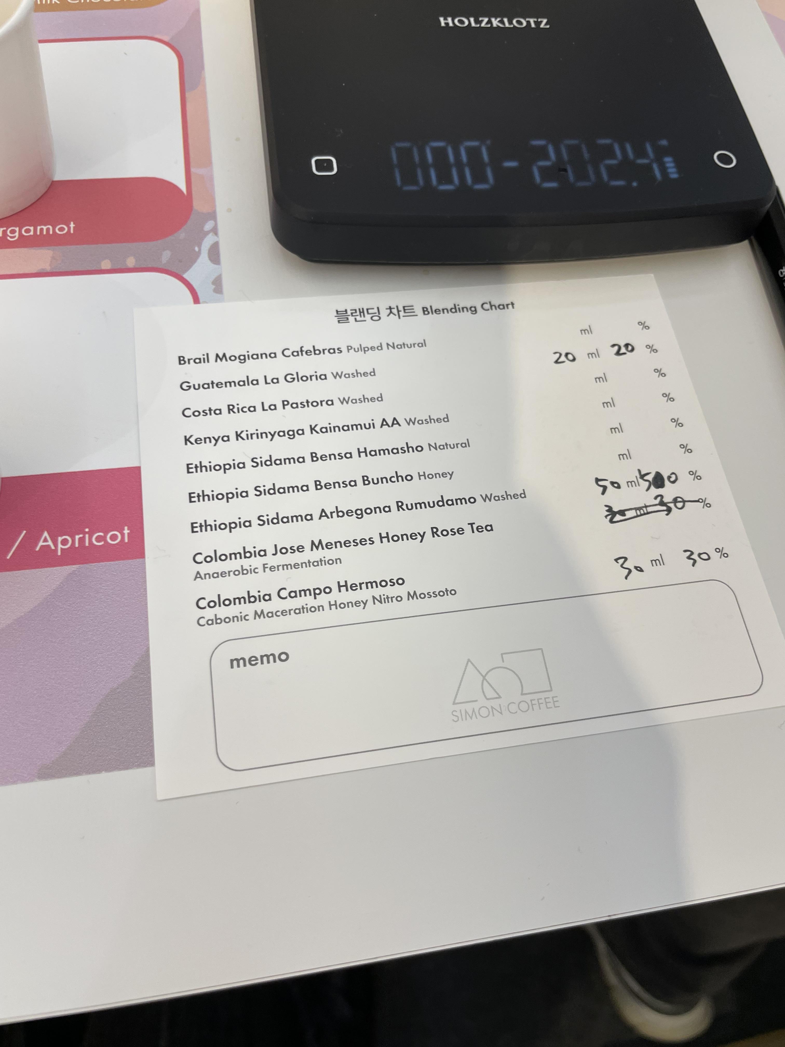 과일이 강하게 느껴지는 커피를 넣었더니 저렇게 블렌딩을 해줬다.